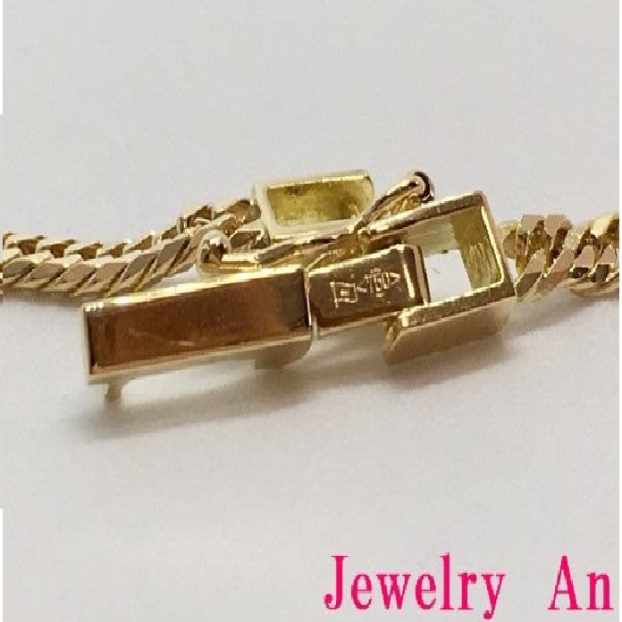 18金 喜平 ネックレス K18 6面カットダブル 9g 45cm 造幣局検定マーク 刻印入り メンズ レディース キヘイ チェーン 2022年7月12日2022年7月12日 | shopmastershopmaster | 0 Comment | 12:00 AM Categories: 18金 6面 ゴールド 商品 18金 喜平 ネックレス K18 6面カットダブル 9g 45cm 造幣局検定マーク 刻印入り メンズ レディース キヘイ チェーン (K186DCW9G) 定価(税込)¥110,527販売価格(税込)¥110,527在庫状態 : 在庫有りシャープなカット面の輝きとしなやかな着用感が人気宝飾品の永遠なるロングセラーと呼ぶべき「キヘイ」は、男女を問わずご愛用頂ける商品です。6面ダブルは、1つのコマに次とその次の2つのコマがかかっている編み方で、密度を高めています。2面喜平に比べると、若干幅が広くて厚みが薄くなっている為、少し太めに見え、豪華なボリューム感がお楽しみ頂けます!また上下左右の6面にカットを施している為、キラキラとした地金の輝きも一層楽しめる、大変人気のある商品です。 サイズ詳細 10g 長さcm 幅mm 厚みmm 金具 45cm 2.4mm 0.9mm 中折れ:最大幅約5.3mm×厚み約1.9mm ” ” 6面ダブル喜平の特徴 「K」とは、カラット(karat)の頭文字となりまして、金製品に金が含まれる純度を24分率で示す単位となります。 K24が1番高い金の含有率100%(純金)となり、K18とは金の含有率が75%のものを指します。 これがいわゆる18金(じゅうはちきん)と呼ばれるものです。 【K18と18Kの違い】 K18などのKが前にあらわす刻印は、主に日本国内で製造された製品に使用されることが多く、18KなどのKがうしろにあらわす刻印は日本以外のアジア各国などで製造された製品に使用されることが多いようです。 K18と18Kとでは、日本の貴金属買取業者の間だと、K18の方が信用度が高いとされます。 普通のタイプ(シングル喜平)は、ひとつのコマに次のコマがかかっていますが、ダブル喜平の場合、ひとつのコマに次とその次の2つのコマがかかってますので豪華です K18 喜平 ※刻印K18 全て造幣局検定マーク付き ※留め金具は中折れです 。 新品、当店保証書付 宝飾品の永遠なるロングセラーと呼ぶべき「キヘイ」は、男女を問わずご愛用頂ける商品です。6面ダブルは、1つのコマに次とその次の2つのコマがかかっている編み方で、密度を高めています。2面喜平に比べると、若干幅が広くて厚みが薄くなっている為、少し太めに見え、豪華なボリューム感がお楽しみ頂けます!また上下左右の6面にカットを施している為、キラキラとした地金の輝きも一層楽しめる、大変人気のある商品です。【素材】K18/ゴールド(留め具裏側に造幣局検定マーク(ホールマーク)入り )【総重量】 9g【サイズ】・長さ/線径:45cm 幅 :約2.4mm 厚み:約0.9mm 金具:中折れ:最大幅約5.3mm×厚み約1.9mm【付属品】ネックレスケース【その他】新品、当店保証書付” 数量個 投稿ナビゲーション PREVIOUS Previous post: 18金 ホワイトゴールド 喜平 ブレスレット K18WG 6面カットダブル 5g 18cm 造幣局検定マーク 刻印入り メンズ レディース キヘイ チェーンNEXT Next post: 18金 ホワイトゴールド 喜平 ネックレス K18WG 6面カットダブル 9g 45cm 造幣局検定マーク 刻印入り メンズ レディース キヘイ チェーン Related Post 18金 喜平 ブレスレット K18 Mカットトリプル 10g 18cm 造幣局検定マーク 刻印入り メンズ レディース キヘイ チェーン 2022年7月12日2022年7月12日 | shopmastershopmaster | 0 Comment 18金 喜平 ブレスレット K18 Mカットトリプル 10g 18cm 造幣局検定マーク 刻印入り メンズ レディース キヘイ チェーン (K18MT10G18) 定価(税込)¥117,800販売価格(税込) […] Read MoreRead More 18金 喜平 ブレスレット K18 8面カットトリプル 100g 21cm 造幣局検定マーク 刻印入り メンズ レディース キヘイ チェーン 2022年7月12日2022年7月12日 | shopmastershopmaster | 0 Comment 18金 喜平 ブレスレット K18 8面カットトリプル 100g 21cm 造幣局検定マーク 刻印入り メンズ レディース キヘイ チェーン (K188TDC100gBR) 定価(税込)¥1,142,780販 […] Read MoreRead More プラチナ850 喜平 ネックレス PT850 6面カットダブル 10g 40cm 造幣局検定マーク 刻印入り メンズ レディース キヘイ チェーン 2022年7月12日2022年7月12日 | shopmastershopmaster | 0 Comment プラチナ850 喜平 ネックレス PT850 6面カットダブル 10g 40cm 造幣局検定マーク 刻印入り メンズ レディース キヘイ チェーン (PT6DCW10G-40) 定価(税込)¥75,798販売 […] Read MoreRead More