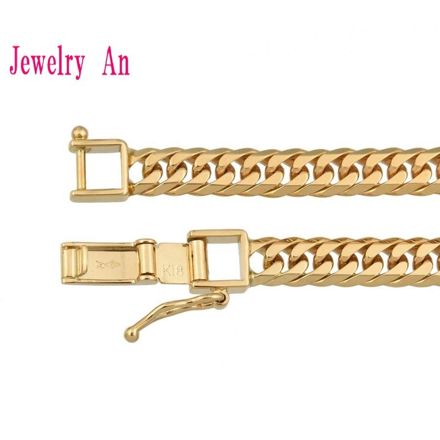 18金 喜平 ブレスレット K18 6面カットダブル 約15g 18cm 造幣局検定マーク 刻印入り メンズ レディース キヘイ チェーン 2022年7月12日2022年7月12日 | shopmastershopmaster | 0 Comment | 12:00 AM Categories: 18金 6面 ゴールド 商品 18金 喜平 ブレスレット K18 6面カットダブル 約15g 18cm 造幣局検定マーク 刻印入り メンズ レディース キヘイ チェーン (K186WDC15gBR) 定価(税込)¥174,411販売価格(税込)¥174,411在庫状態 : 在庫有りシャープなカット面の輝きとしなやかな着用感が人気 サイズ詳細 15.23g 長さcm 幅mm 厚みmm 金具 18cm 5mm 2mm 中折 ” ” 6面ダブル喜平の特徴 「K」とは、カラット(karat)の頭文字となりまして、金製品に金が含まれる純度を24分率で示す単位となります。 K24が1番高い金の含有率100%(純金)となり、K18とは金の含有率が75%のものを指します。 これがいわゆる18金(じゅうはちきん)と呼ばれるものです。 【K18と18Kの違い】 K18などのKが前にあらわす刻印は、主に日本国内で製造された製品に使用されることが多く、18KなどのKがうしろにあらわす刻印は日本以外のアジア各国などで製造された製品に使用されることが多いようです。 K18と18Kとでは、日本の貴金属買取業者の間だと、K18の方が信用度が高いとされます。 普通のタイプ(シングル喜平)は、ひとつのコマに次のコマがかかっていますが、ダブル喜平の場合、ひとつのコマに次とその次の2つのコマがかかってますので豪華です K18 喜平 ※刻印K18 全て造幣局検定マーク付き ※留め金具は中折れです 。 新品、当店保証書付 【素材】K18/ゴールド(留具プレートに刻印入り) 【総重量】 15.23g【サイズ 18cm】 長さ:約18cm 幅 :約5mm 厚み:約2mm 金具:中折れ【付属品】ブレスレットケース【その他】新品、当店保証書付【画像】着用マネキン 手首回り約13cm” 数量個 投稿ナビゲーション PREVIOUS Previous post: 18金 喜平 ネックレス K18 6面カットダブル 15g 50cm 造幣局検定マーク 刻印入り メンズ レディース キヘイ チェーンNEXT Next post: 18金 喜平 ネックレス K18 6面カットダブル 20g 40cm 造幣局検定マーク 刻印入り メンズ レディース キヘイ チェーン Related Post プラチナ850 喜平 ネックレス PT850 2面カット 100g 50cm 60cm 造幣局検定マーク 刻印入り メンズ レディース キヘイ チェーン 2022年7月12日2022年7月12日 | shopmastershopmaster | 0 Comment プラチナ850 喜平 ネックレス PT850 2面カット 100g 50cm 60cm 造幣局検定マーク 刻印入り メンズ レディース キヘイ チェーン (Pt2DC100g) 定価(税込)¥712,937販 […] Read MoreRead More 18金 喜平 チェーンネックレス K18 2面カット 0.29φ 0.96mm幅 50cm 約1.95g 造幣局検定マーク 刻印入り メンズ レディース キヘイ チェーン 2022年7月12日2022年7月12日 | shopmastershopmaster | 0 Comment 18金 喜平 チェーンネックレス K18 2面カット 0.29φ 0.96mm幅 50cm 約1.95g 造幣局検定マーク 刻印入り メンズ レディース キヘイ チェーン (K18N008) 定価(税込)¥2 […] Read MoreRead More プラチナ850 喜平 チェーンネックレス PT850 2面カット 0.45φ 1.5mm幅 40cm 約4.50g 造幣局検定マーク 刻印入り メンズ レディース キヘイ チェーン 2022年7月12日2022年7月12日 | shopmastershopmaster | 0 Comment プラチナ850 喜平 チェーンネックレス PT850 2面カット 0.45φ 1.5mm幅 40cm 約4.50g 造幣局検定マーク 刻印入り メンズ レディース キヘイ チェーン (PT8500N13) 定 […] Read MoreRead More
