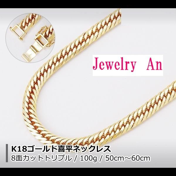 18金 喜平 ネックレス K18 8面カットトリプル 100g 50cm 60cm 造幣局検定マーク 刻印入り メンズ レディース キヘイ チェーン 2022年7月12日2022年7月12日 | shopmastershopmaster | 0 Comment | 12:00 AM Categories: 18金 8面 ゴールド 商品 18金 喜平 ネックレス K18 8面カットトリプル 100g 50cm 60cm 造幣局検定マーク 刻印入り メンズ レディース キヘイ チェーン (K188TDC100g) 定価(税込)¥1,142,780販売価格(税込)¥1,142,780在庫状態 : 在庫有り重量感・光沢・しなやかさは最高位。究極の喜平チェーン サイズ詳細 100g 長さcm 幅mm 厚みmm 金具 50cm 8.7mm 3.4mm 中折(ダブルストッパー、最大幅約13.9mm×厚み約4.1mm ) 60cm 7.5mm 3.2mm 中折(シングルストッパー、最大幅約10.0mm×厚み約3.2mm ) 【モデル着用サイズ60cm】” ” K18ゴールドとは 「K」とは、カラット(karat)の頭文字となりまして、金製品に金が含まれる純度を24分率で示す単位となります。 K24が1番高い金の含有率100%(純金)となり、K18とは金の含有率が75%のものを指します。 これがいわゆる18金(じゅうはちきん)と呼ばれるものです。 【K18と18Kの違い】 K18などのKが前にあらわす刻印は、主に日本国内で製造された製品に使用されることが多く、18KなどのKがうしろにあらわす刻印は日本以外のアジア各国などで製造された製品に使用されることが多いようです。 K18と18Kとでは、日本の貴金属買取業者の間だと、K18の方が信用度が高いとされます。 シンプルな定番のデザインでありながら存在感があり、ファッションにも合わせやすいアイテムです。 男性だけでなく、女性にもご愛用いただけます。 普通のタイプ(シングル喜平)は、ひとつのコマに次のコマがかかっていますが、トリプル喜平の場合、ひとつのコマに3つのコマがかかってますので豪華です K18 喜平 ※刻印K18 全て造幣局検定マーク付き ※留め金具は中折れです 新品、当店保証書付 トリプル喜平はひとつのコマに3つのコマがかかってますので豪華です【素材】K18/ゴールド 造幣局検定マーク(ホールマーク) 【総重量】 100g【サイズ 50cm】 長さ:約50cm 幅 :約8.7mm 厚み:約3.4mm 金具:中折れ(ダブルストッパー) 金具の大きさ:最大幅約13.9mm×厚み約4.1mm【サイズ 60cm】 長さ:約60cm 幅 :約7.5mm 厚み:約3.2mm 金具:中折れ(シングルストッパー) 金具の大きさ:最大幅約10.0mm×厚み約3.2mm【付属品】ネックレスケース【その他】新品、当店保証書付※他モールとの在庫を共有しているためシステムのタイムラグにより購入時在庫切れになる場合がございます。ご注文後、在庫切れの場合はこちらからご連絡させて頂きます。予めご了承くださいませ。18金 K18 金 ゴールド 刻印 検定マーク喜平 kihei きへい 喜平ネックレス 喜平チェーン喜平アクセサリー 喜平ジュエリー メンズ レディースファッション アクセサリー ジュエリー 日本産8面 100g 60cm 50cm MADEINAPAN ギフト ラッピングクリスマス 記念日 父の日 母の日 バレンタインデーホワイトデー” 数量個 投稿ナビゲーション PREVIOUS Previous post: 18金 喜平 ネックレス K18 8面カットトリプル 80g 60cm 造幣局検定マーク 刻印入り メンズ レディース キヘイ チェーンNEXT Next post: 18金 喜平 ブレスレット K18 8面カットトリプル 100g 21cm 造幣局検定マーク 刻印入り メンズ レディース キヘイ チェーン Related Post プラチナ850 喜平 ネックレス PT850 2面カット 100g 50cm 60cm 造幣局検定マーク 刻印入り メンズ レディース キヘイ チェーン 2022年7月12日2022年7月12日 | shopmastershopmaster | 0 Comment プラチナ850 喜平 ネックレス PT850 2面カット 100g 50cm 60cm 造幣局検定マーク 刻印入り メンズ レディース キヘイ チェーン (Pt2DC100g) 定価(税込)¥712,937販 […] Read MoreRead More プラチナ850 喜平ネックレス Pt850 8面カットトリプル 300g 63cm メンズ レディース 喜平 2022年7月12日2022年7月12日 | shopmastershopmaster | 0 Comment プラチナ850 喜平ネックレス Pt850 8面カットトリプル 300g 63cm メンズ レディース 喜平 (pt8508dtr300g) 定価(税込)¥2,256,026販売価格(税込)¥2,256,02 […] Read MoreRead More 18金 喜平 チェーンネックレス K18 2面カット 0.24φ 0.8mm幅 40cm 約1.16g 刻印入り メンズ レディース キヘイ チェーン 2022年7月12日2022年7月12日 | shopmastershopmaster | 0 Comment 18金 喜平 チェーンネックレス K18 2面カット 0.24φ 0.8mm幅 40cm 約1.16g 刻印入り メンズ レディース キヘイ チェーン (K18N001) 定価(税込)¥20,491販売価格( […] Read MoreRead More