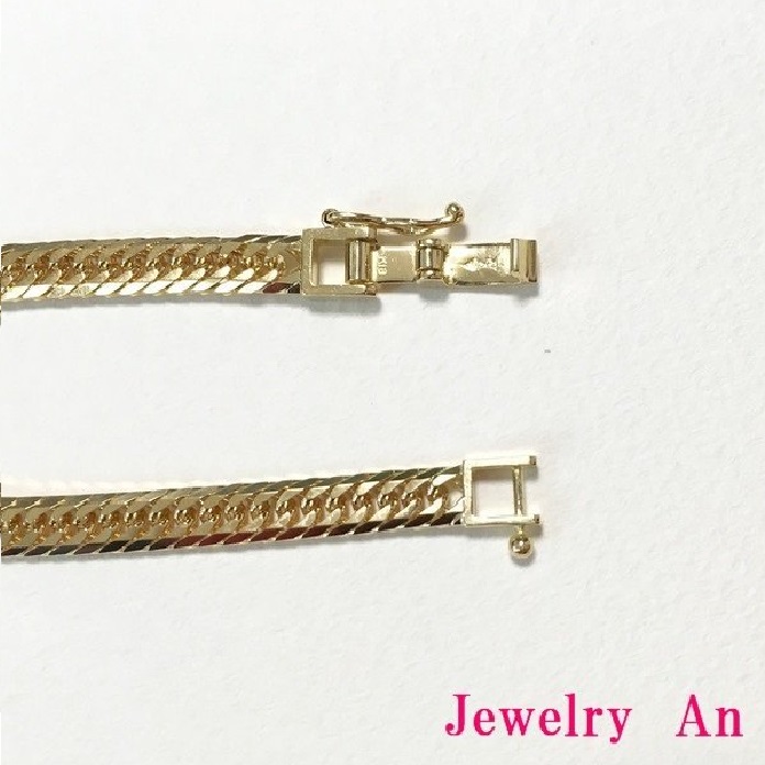 18金 喜平 ブレスレット&アンクレット K18 8面カットトリプル 10g 18cm 20cm 24cm 造幣局検定マーク 刻印入り メンズ レディース キヘイ チェーン 2022年7月12日2022年7月12日 | shopmastershopmaster | 0 Comment | 12:00 AM Categories: 18金 8面 ゴールド 商品 18金 喜平 ブレスレット&アンクレット K18 8面カットトリプル 10g 18cm 20cm 24cm 造幣局検定マーク 刻印入り メンズ レディース キヘイ チェーン (K188TDC10gBR) 定価(税込)¥124,109販売価格(税込)¥124,109在庫状態 : 在庫有り重量感・光沢・しなやかさは最高位。究極の喜平チェーン サイズ詳細 10g 長さcm 幅mm 厚みmm 金具 18cm 4.4mm 1.7mm 中折 20cm 4.3mm 1.6mm 中折 24cm 3.7mm 1.5mm 中折 長さ24cmはアンクレットです。 ” ” K18ゴールドとは 「K」とは、カラット(karat)の頭文字となりまして、金製品に金が含まれる純度を24分率で示す単位となります。 K24が1番高い金の含有率100%(純金)となり、K18とは金の含有率が75%のものを指します。 これがいわゆる18金(じゅうはちきん)と呼ばれるものです。 【K18と18Kの違い】 K18などのKが前にあらわす刻印は、主に日本国内で製造された製品に使用されることが多く、18KなどのKがうしろにあらわす刻印は日本以外のアジア各国などで製造された製品に使用されることが多いようです。 K18と18Kとでは、日本の貴金属買取業者の間だと、K18の方が信用度が高いとされます。 シンプルな定番のデザインでありながら存在感があり、ファッションにも合わせやすいアイテムです。 男性だけでなく、女性にもご愛用いただけます。 普通のタイプ(シングル喜平)は、ひとつのコマに次のコマ1つがかかっていますが、トリプル喜平の場合、ひとつのコマ3つのコマがかかってますので豪華です K18 喜平 ※刻印K18 全て造幣局検定マーク付き ※留め金具は中折です。 新品、当店保証書付 他モールとの在庫を共有しているため、シテムのタイムラグにより購入時稀に在庫切れとなる場合がございます。プレゼント等でお急ぎの方はお手数ですが1度お問い合わせください。なお購入後在庫切れの場合はこちらからご連絡させていただきます。申し訳ございませんが、予めご了承くださいませ。 【素材】K18/ゴールド(留具プレートに刻印入り) 【総重量】 10g【サイズ 18cm】 長さ:約18cm 幅 :約4.4mm 厚み:約1.7mm 金具:中折れ【サイズ 20cm】 長さ:約20cm 幅 :約4.3mm 厚み:約1.6mm 金具:中折れ【サイズ 24cm】 長さ:約24cm 幅 :約3.7mm 厚み:約1.5mm 金具:中折れ アンクレット【付属品】ブレスレットケース【その他】新品、当店保証書付” 数量個 投稿ナビゲーション PREVIOUS Previous post: 18金 喜平 ネックレス K18 8面カットトリプル 10g 40cm 造幣局検定マーク 刻印入り メンズ レディース キヘイ チェーンNEXT Next post: 18金 ホワイトゴールド 喜平 ネックレス K18WG 8面カットトリプル 10g 40cm 造幣局検定マーク 刻印入り メンズ レディース キヘイ チェーン Related Post 18金 喜平 チェーンネックレス K18 2面カット 0.40φ 1.34mm幅 40cm 約3.00g 造幣局検定マーク 刻印入り メンズ レディース キヘイ チェーン 2022年7月12日2022年7月12日 | shopmastershopmaster | 0 Comment 18金 喜平 チェーンネックレス K18 2面カット 0.40φ 1.34mm幅 40cm 約3.00g 造幣局検定マーク 刻印入り メンズ レディース キヘイ チェーン (K18N014) 定価(税込)¥4 […] Read MoreRead More 18金 喜平 チェーンネックレス K18 2面カット 0.35φ 1.24mm幅 50cm 約2.8g 造幣局検定マーク 刻印入り メンズ レディース キヘイ チェーン 2022年7月12日2022年7月12日 | shopmastershopmaster | 0 Comment 18金 喜平 チェーンネックレス K18 2面カット 0.35φ 1.24mm幅 50cm 約2.8g 造幣局検定マーク 刻印入り メンズ レディース キヘイ チェーン (K18N012) 定価(税込)¥39 […] Read MoreRead More K18キヘイ6面カットダブル 150g-21cm K18 18金 ブレスレット 喜平 メンズ レディース チェーン 造幣局検定マーク刻印入 2022年7月12日2022年7月12日 | shopmastershopmaster | 0 Comment K18キヘイ6面カットダブル 150g-21cm K18 18金 ブレスレット 喜平 メンズ レディース チェーン 造幣局検定マーク刻印入 (K186WDC150gBR) 定価(税込)¥1,684,675販売 […] Read MoreRead More