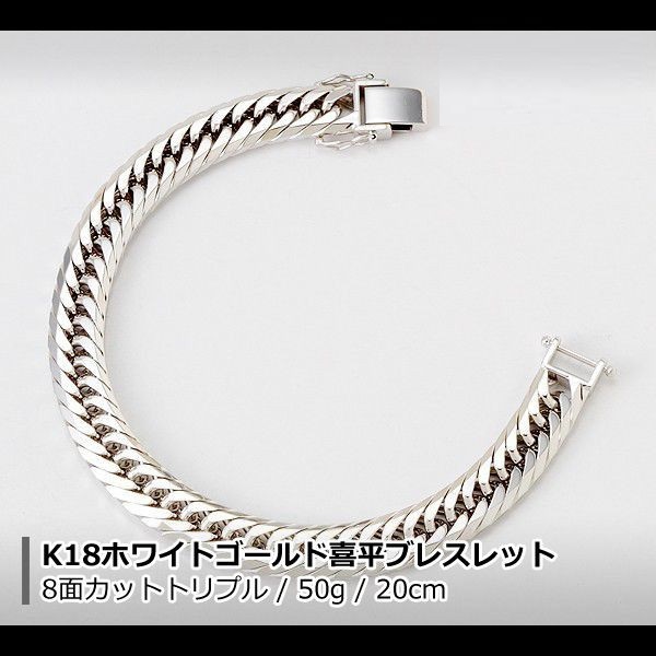 18金 ホワイトゴールド 喜平 ブレスレット K18WG 8面カットトリプル 50g 20cm 造幣局検定マーク 刻印入り メンズ レディース キヘイ チェーン 2022年7月12日2022年7月12日 | shopmastershopmaster | 0 Comment | 12:00 AM Categories: 18金 8面 ホワイトゴールド 商品 18金 ホワイトゴールド 喜平 ブレスレット K18WG 8面カットトリプル 50g 20cm 造幣局検定マーク 刻印入り メンズ レディース キヘイ チェーン (K18WG8TDC50gBR) 定価(税込)¥678,521販売価格(税込)¥678,521在庫状態 : 在庫有り重量感・光沢・しなやかさは最高位。究極の喜平チェーン サイズ詳細 50g 長さcm 幅mm 厚みmm 金具 20cm 9.2mm 3.6mm 中折 ” ” K18ゴールドとは 「K」とは、カラット(karat)の頭文字となりまして、金製品に金が含まれる純度を24分率で示す単位となります。 K24が1番高い金の含有率100%(純金)となり、K18とは金の含有率が75%のものを指します。 これがいわゆる18金(じゅうはちきん)と呼ばれるものです。 【K18と18Kの違い】 K18などのKが前にあらわす刻印は、主に日本国内で製造された製品に使用されることが多く、18KなどのKがうしろにあらわす刻印は日本以外のアジア各国などで製造された製品に使用されることが多いようです。 K18と18Kとでは、日本の貴金属買取業者の間だと、K18の方が信用度が高いとされます。 シンプルな定番のデザインでありながら存在感があり、ファッションにも合わせやすいアイテムです。 男性だけでなく、女性にもご愛用いただけます。 普通のタイプ(シングル喜平)は、ひとつのコマに次のコマがかかっていますが、トリプル喜平の場合、ひとつのコマに3つのコマがかかってますので豪華です ホワイトゴールド 喜平※刻印K18WG すべて造幣局検定マーク付 新品、当店保証書付 【素材】K18WG/ホワイトゴールド(留具プレートに刻印入り) 【総重量】 50g【サイズ 20cm】 長さ:約20cm 幅 :約9.2mm 厚み:約3.6mm 金具:中折れ【付属品】ブレスレットケース【その他】新品、当店保証書付” 数量個 投稿ナビゲーション PREVIOUS Previous post: 18金 ホワイトゴールド 喜平 ネックレス K18WG 8面カットトリプル 50g 50cm 60cm 造幣局検定マーク 刻印入り メンズ レディース キヘイ チェーンNEXT Next post: プラチナ850 喜平 ネックレス PT850 8面カットトリプル 50g 50cm 60cm 造幣局検定マーク 刻印入り メンズ レディース キヘイ チェーン Related Post プラチナ850 喜平 ネックレス PT850 6面カットダブル 50g 50cm 60cm 1.17φ 1.10φ 造幣局検定マーク 刻印入り メンズ レディース キヘイ チェーン 2022年7月12日2022年7月12日 | shopmastershopmaster | 0 Comment プラチナ850 喜平 ネックレス PT850 6面カットダブル 50g 50cm 60cm 1.17φ 1.10φ 造幣局検定マーク 刻印入り メンズ レディース キヘイ チェーン (Pt6WDC50g) 定 […] Read MoreRead More 18金 喜平 ネックレス K18 6面カットダブル 10g 40cm 45cm 50cm 60cm 造幣局検定マーク 刻印入り メンズ レディース キヘイ チェーン 2022年7月12日2022年7月12日 | shopmastershopmaster | 0 Comment 18金 喜平 ネックレス K18 6面カットダブル 10g 40cm 45cm 50cm 60cm 造幣局検定マーク 刻印入り メンズ レディース キヘイ チェーン (K186WDC10g) 定価(税込)¥1 […] Read MoreRead More 18金 喜平 ネックレス K18 6面カットダブル 30g 50cm 60cm 造幣局検定マーク 刻印入り メンズ レディース キヘイ チェーン 2022年7月12日2022年7月12日 | shopmastershopmaster | 0 Comment 18金 喜平 ネックレス K18 6面カットダブル 30g 50cm 60cm 造幣局検定マーク 刻印入り メンズ レディース キヘイ チェーン (K186WDC30g) 定価(税込)¥345,187販売価格 […] Read MoreRead More