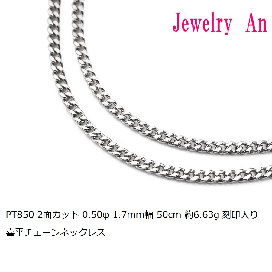 プラチナ850 喜平 チェーンネックレス PT850 2面カット 0.50φ 1.7mm幅 50cm 約6.63g 刻印入り メンズ レディース キヘイ チェーン 2022年7月12日2022年7月12日 | shopmastershopmaster | 0 Comment | 12:00 AM Categories: 18金 2面 プラチナ 商品 プラチナ850 喜平 チェーンネックレス PT850 2面カット 0.50φ 1.7mm幅 50cm 約6.63g 刻印入り メンズ レディース キヘイ チェーン (PT8500N20) 定価(税込)¥46,630販売価格(税込)¥46,630在庫状態 : 在庫有り細見のチェーンですので、小ぶりのトップに最適です。プレゼントにもどうぞ! 商品説明 素材 PT850(留具プレートに刻印入り) サイズ 太さ:1.7mm(線径0.50φ) 総重量:約6.63g (入荷時期により若干の変動がございます) 全長:約50cm 留め金具 引輪 注意 ” ” 2面喜平の特徴 「K」とは、カラット(karat)の頭文字となりまして、金製品に金が含まれる純度を24分率で示す単位となります。 K24が1番高い金の含有率100%(純金)となり、K18とは金の含有率が75%のものを指します。 これがいわゆる18金(じゅうはちきん)と呼ばれるものです。 【K18と18Kの違い】 K18などのKが前にあらわす刻印は、主に日本国内で製造された製品に使用されることが多く、18KなどのKがうしろにあらわす刻印は日本以外のアジア各国などで製造された製品に使用されることが多いようです。 K18と18Kとでは、日本の貴金属買取業者の間だと、K18の方が信用度が高いとされます。 ※送料及び代引き手数料無料! 新品、当店保証書付 他モールとの在庫を共有しているため、 システムのタイムラグにより 購入時在庫切れになる場合がございます。 ご注文後、在庫切れの場合は こちらからご連絡させて頂きます。 申し訳ございませんが予めご了承くださいませ。 長さ 50cm重量 約6.63g(入荷時期により若干の変動がございます) 幅 約1.7mm(線径0.50φ)素材(刻印):PT850 刻印デザイン:喜平(2面)留め金具:引輪” 数量個 投稿ナビゲーション PREVIOUS Previous post: プラチナ850 喜平 チェーンネックレス PT850 2面カット 0.50φ 1.7mm幅 45cm 約5.99g 刻印入り メンズ レディース キヘイ チェーンNEXT Next post: プラチナ850 喜平 チェーンネックレス PT850 2面カット 0.55φ 1.9mm幅 40cm 約6.60g 刻印入り メンズ レディース キヘイ チェーン Related Post プラチナ850 喜平 ネックレス PT850 6面カットダブル 11g 50cm 造幣局検定マーク 刻印入り メンズ レディース キヘイ チェーン 2022年7月12日2022年7月12日 | shopmastershopmaster | 0 Comment プラチナ850 喜平 ネックレス PT850 6面カットダブル 11g 50cm 造幣局検定マーク 刻印入り メンズ レディース キヘイ チェーン (PT6DCW11G-50) 定価(税込)¥83,378販売 […] Read MoreRead More 18金 ホワイトゴールド 喜平 ネックレス K18WG 6面カットダブル 10g 40cm 50cm 造幣局検定マーク 刻印入り メンズ レディース キヘイ チェーン 2022年7月12日2022年7月12日 | shopmastershopmaster | 0 Comment 18金 ホワイトゴールド 喜平 ネックレス K18WG 6面カットダブル 10g 40cm 50cm 造幣局検定マーク 刻印入り メンズ レディース キヘイ チェーン (K18WG6WDC10g) 定価(税込 […] Read MoreRead More 純金 喜平 ネックレス K24 6面カットダブル 50g 50cm 造幣局検定マーク 刻印入り メンズ レディース キヘイ チェーン 2022年7月12日2022年7月12日 | shopmastershopmaster | 0 Comment 純金 喜平 ネックレス K24 6面カットダブル 50g 50cm 造幣局検定マーク 刻印入り メンズ レディース キヘイ チェーン (K246DCW50G-50) 定価(税込)¥979,029販売価格(税込 […] Read MoreRead More
