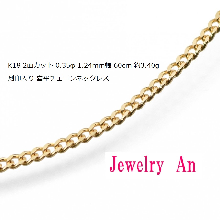 18金 喜平 チェーンネックレス K18 2面カット 0.35φ 1.24mm幅 60cm 約3.40g 刻印入り メンズ レディース キヘイ チェーン18金 喜平 チェーンネックレス K18 2面カット 0.35φ 1.24mm幅 60cm 約3.40g 刻印入り メンズ レディース キヘイ チェーン