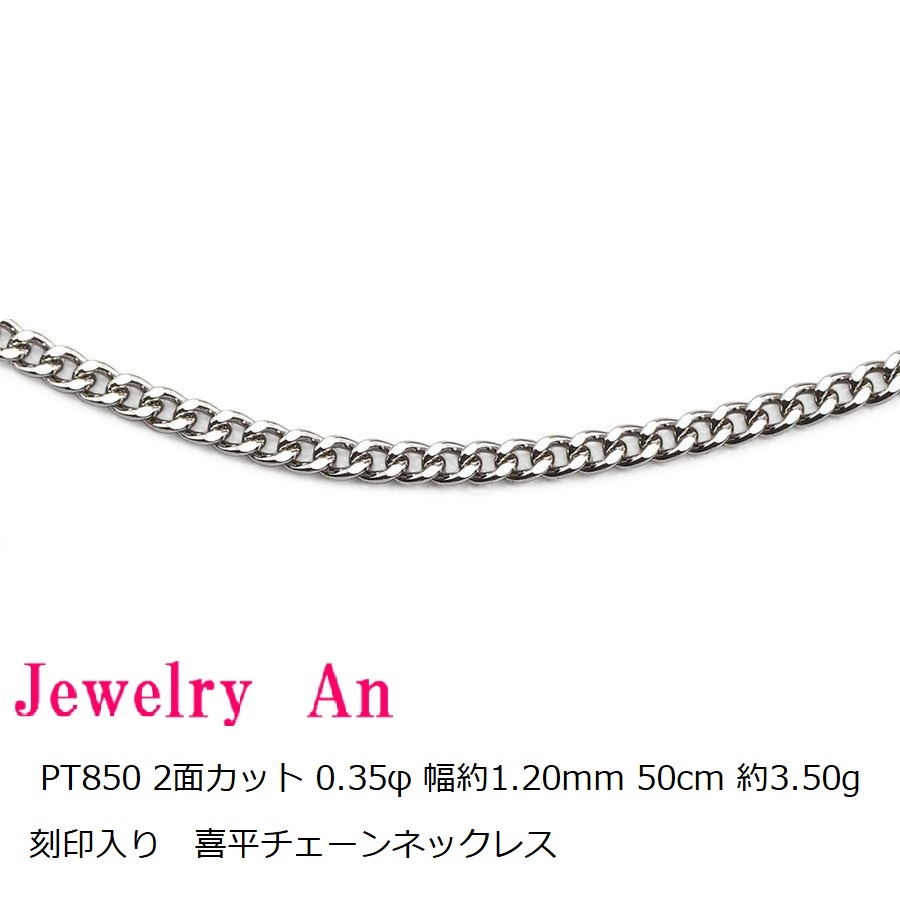 プラチナ850 喜平 チェーンネックレス PT850 2面カット 0.35φ 幅約1.20mm 50cm 約3.50g メンズ レディース キヘイ チェーンプラチナ850 喜平 チェーンネックレス PT850 2面カット 0.35φ 幅約1.20mm 50cm 約3.50g メンズ レディース キヘイ チェーン