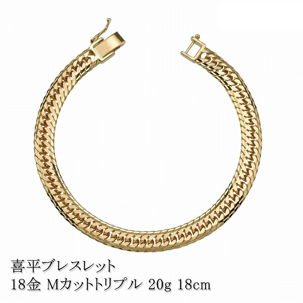 18金 喜平 ブレスレット K18 Mカットトリプル 20g 18cm 造幣局検定マーク 刻印入り メンズ レディース キヘイ チェーン18金 喜平 ブレスレット K18 Mカットトリプル 20g 18cm 造幣局検定マーク 刻印入り メンズ レディース キヘイ チェーン
